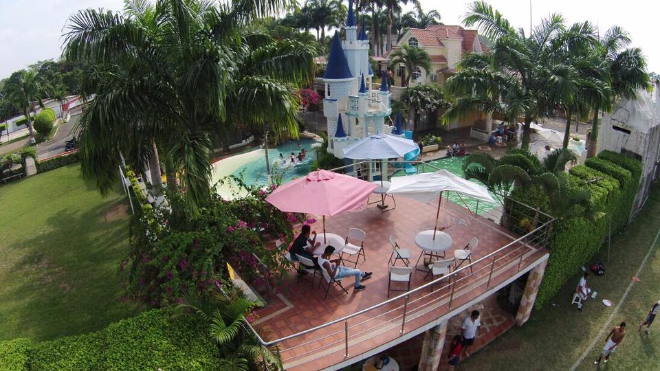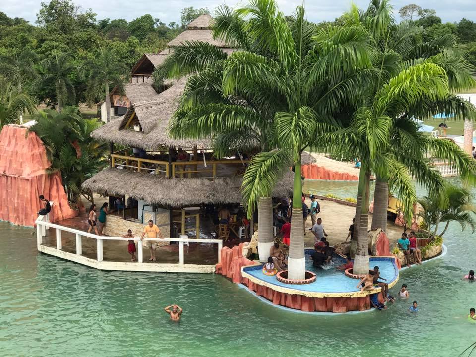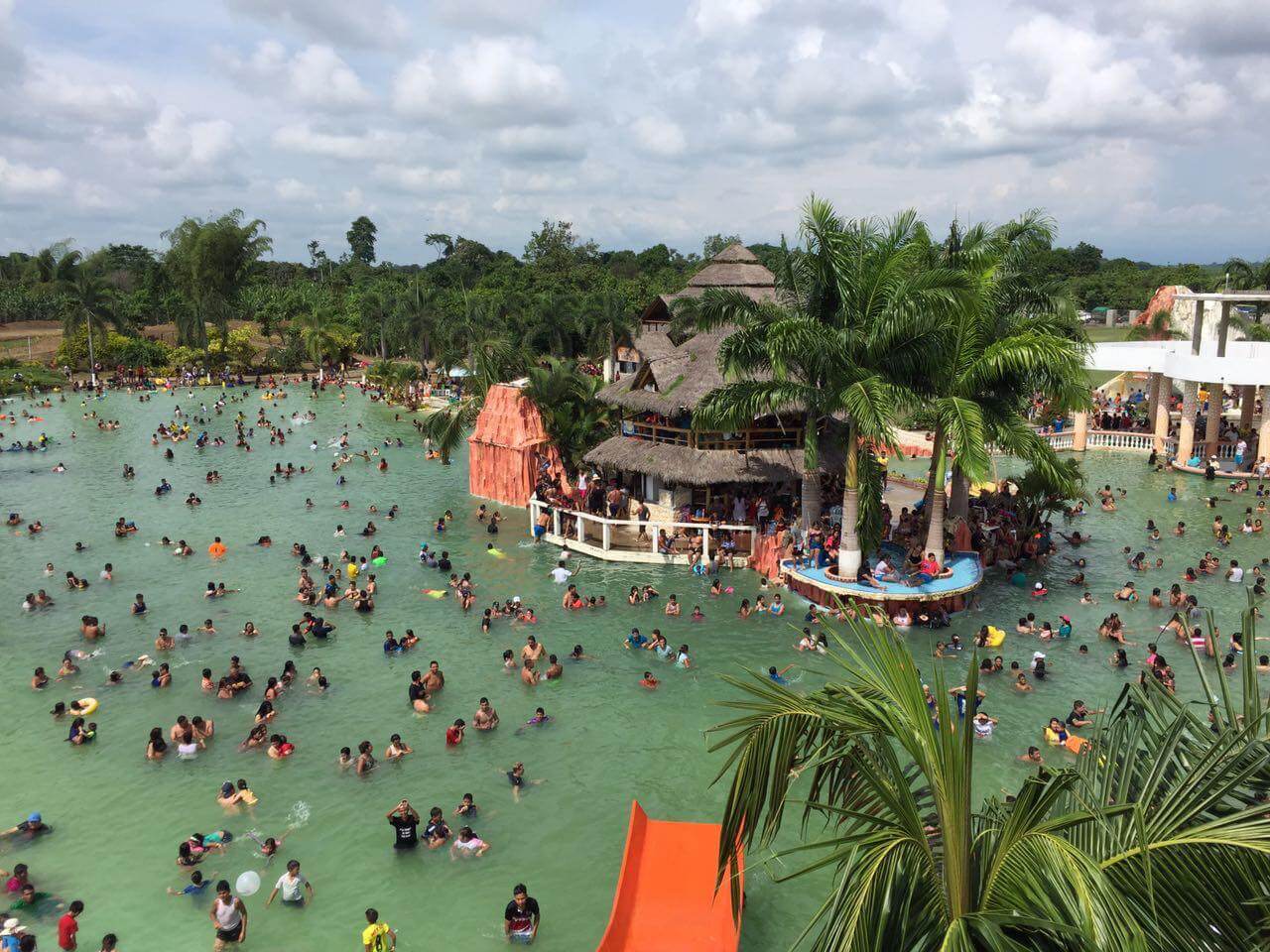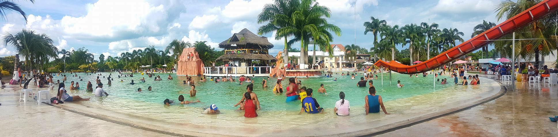 Contamos con 4 piscinas pequeñas, una mega – piscina (tipo lago), cabaña de cocteles, cabañas de relax, toboganes normales y tobogán tipo slip&fly, montaña artificial para clavadistas, canchas de fútbol con césped natural y cancha de volleyball con arena, pista de motocross, escenario con sonido profesional, patio de comidas y todo tipo de bebidas.