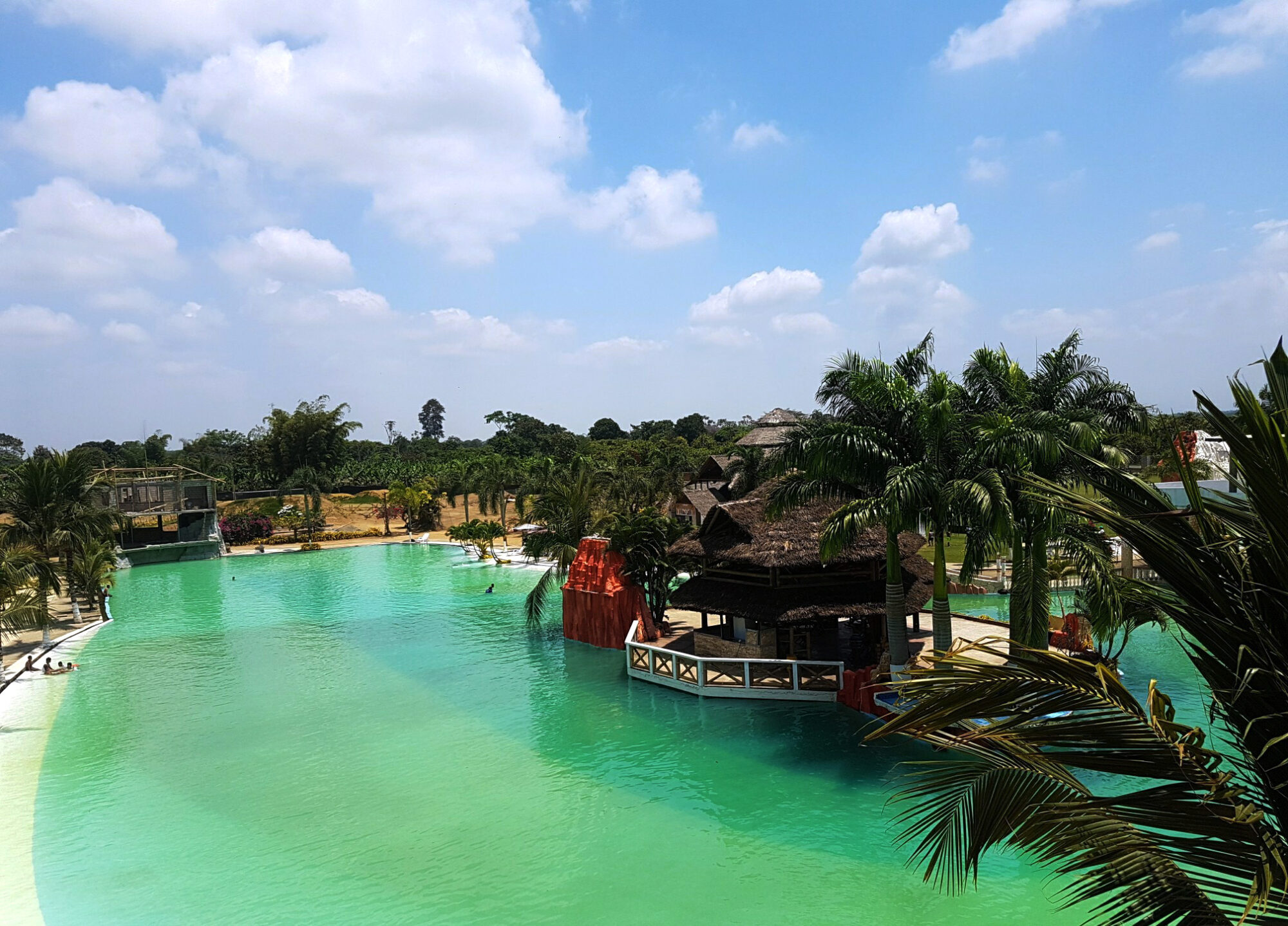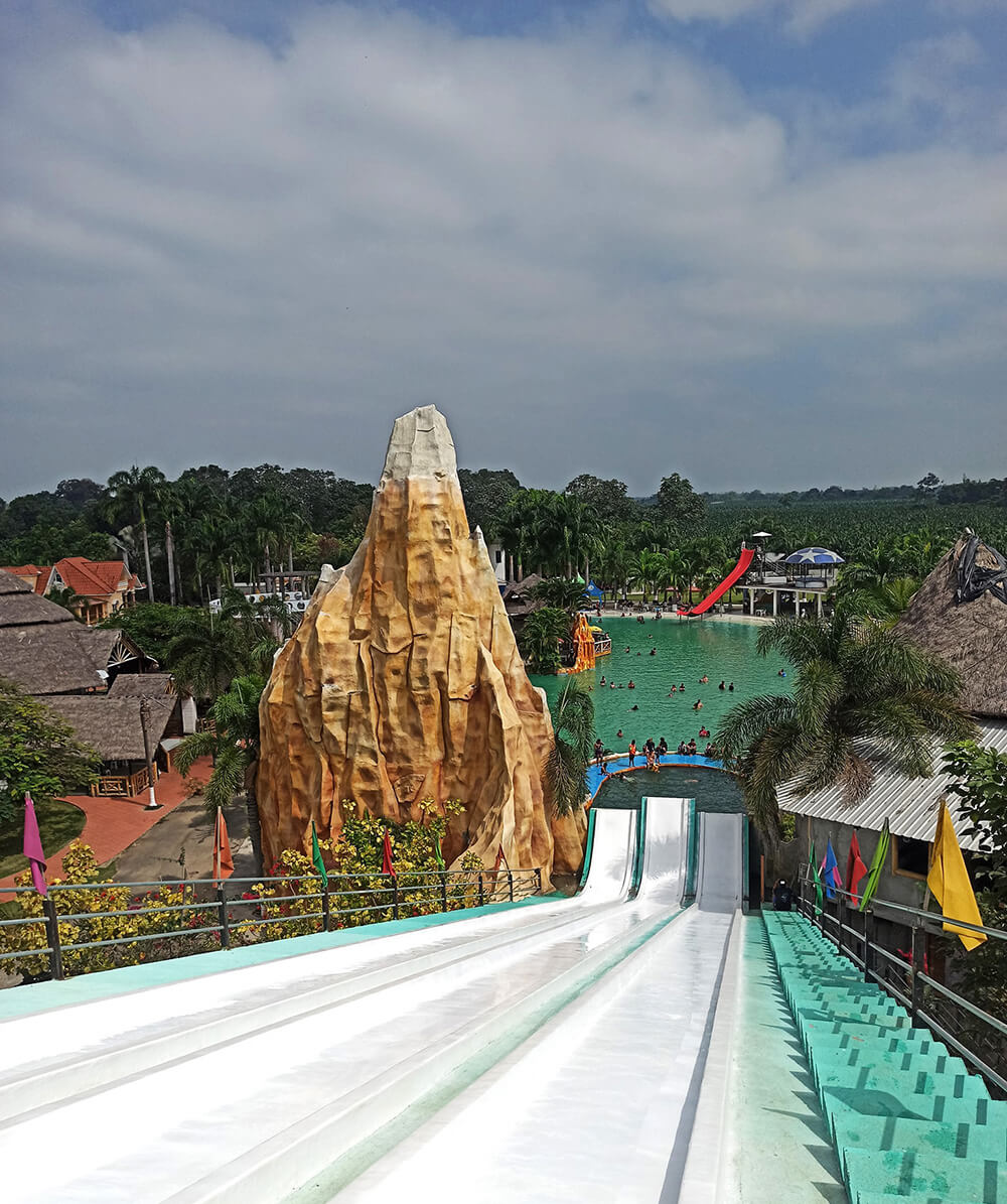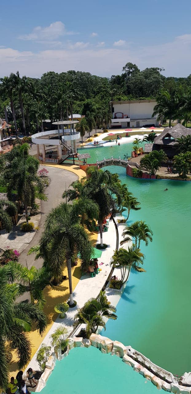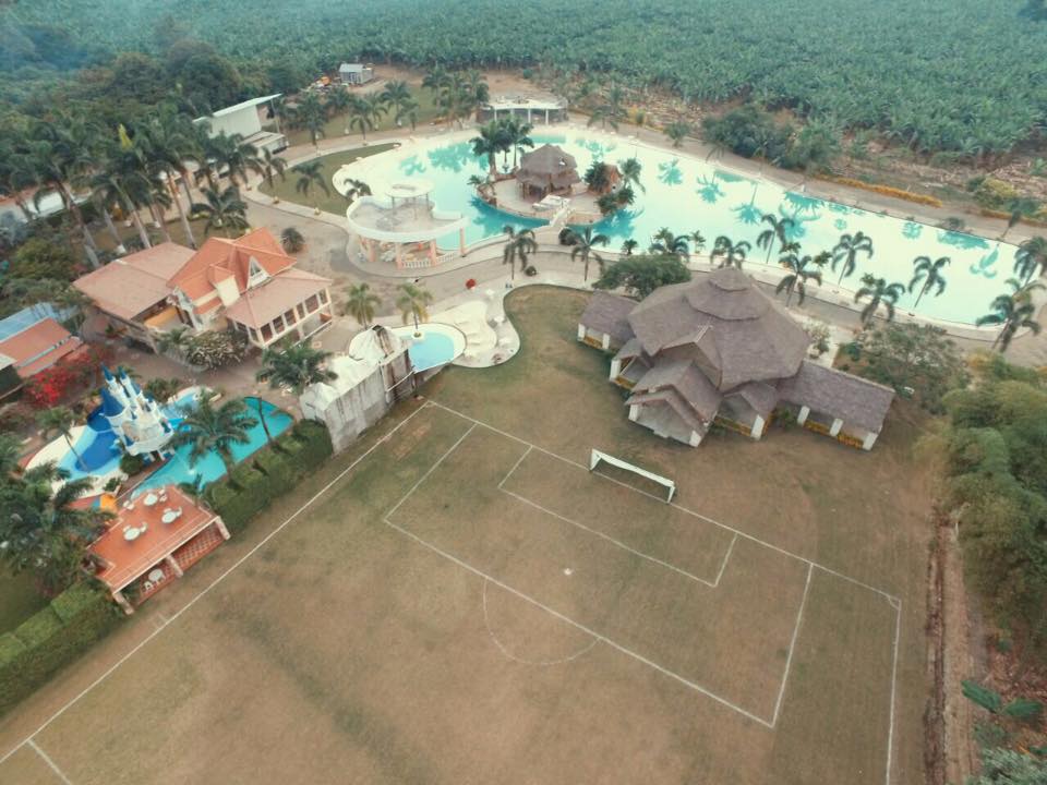 Contamos con 4 piscinas pequeñas, una mega – piscina (tipo lago), cabaña de cocteles, cabañas de relax, toboganes normales y tobogán tipo slip&fly, montaña artificial para clavadistas, canchas de fútbol con césped natural y cancha de volleyball con arena, pista de motocross, escenario con sonido profesional, patio de comidas y todo tipo de bebidas.